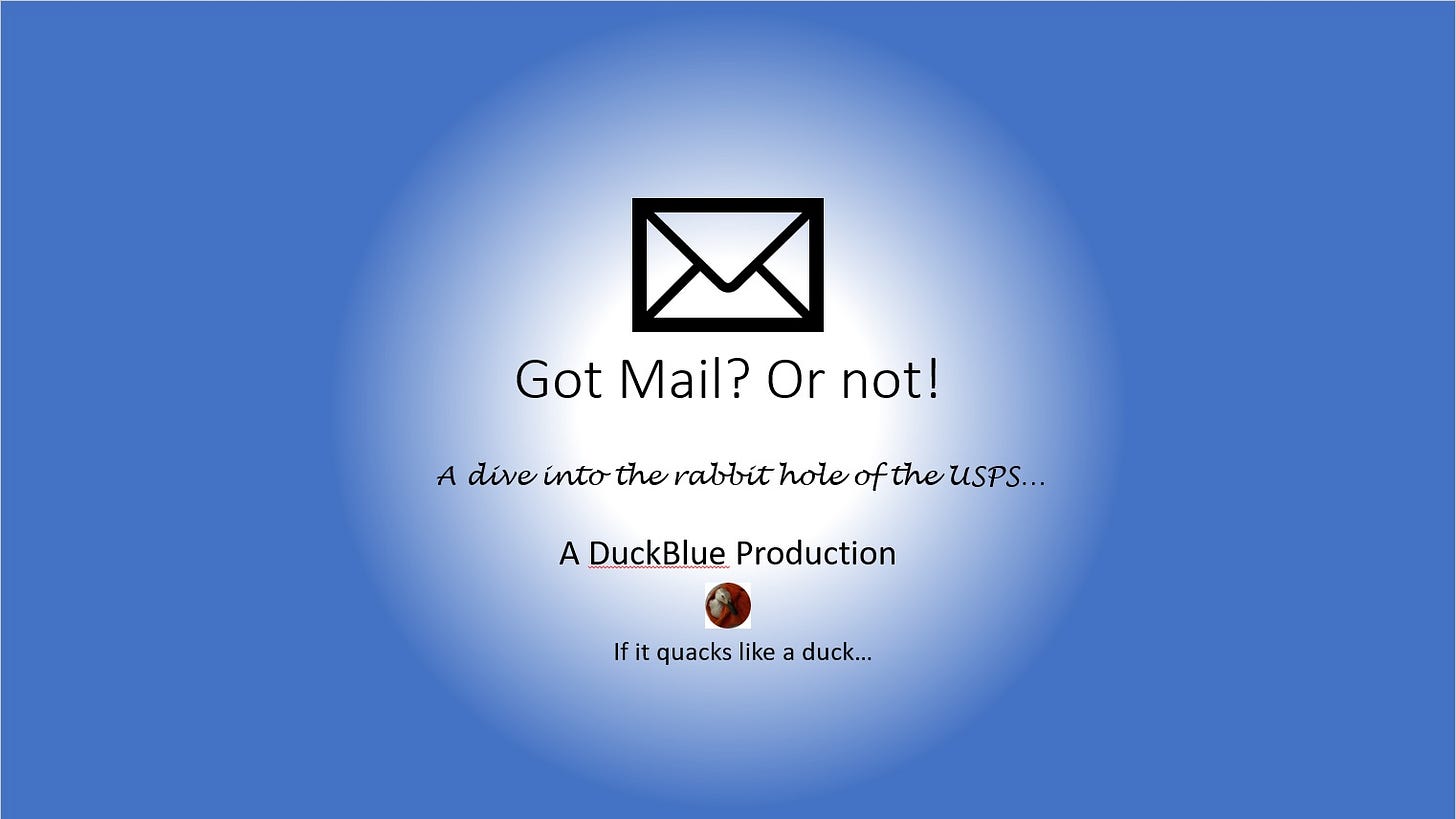 I would like to go over my video presentation, hosted by Kevin Hoyt on “GrassRootsWarrior”. This was my first presentation in video form, which is posted for viewing on my Rumble channel, “DuckBlue”. Here’s the link: https://rumble.com/v2abao2-a-sharing-of-info-about-the-postal-service.html